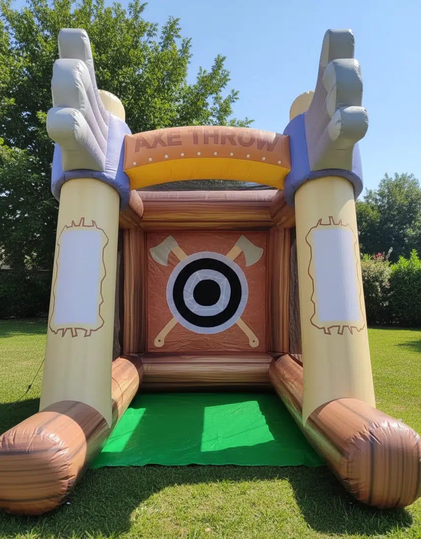 מתקן קליעת גרזנים למטרה, מתנפח לאירועים במתקן מטרה מסקוצ' אליה יכוונו המשתתפים את גרזני הפלסטיק בנסיון לקלוע אל מרכז המטרה ולנצח את האתגר.